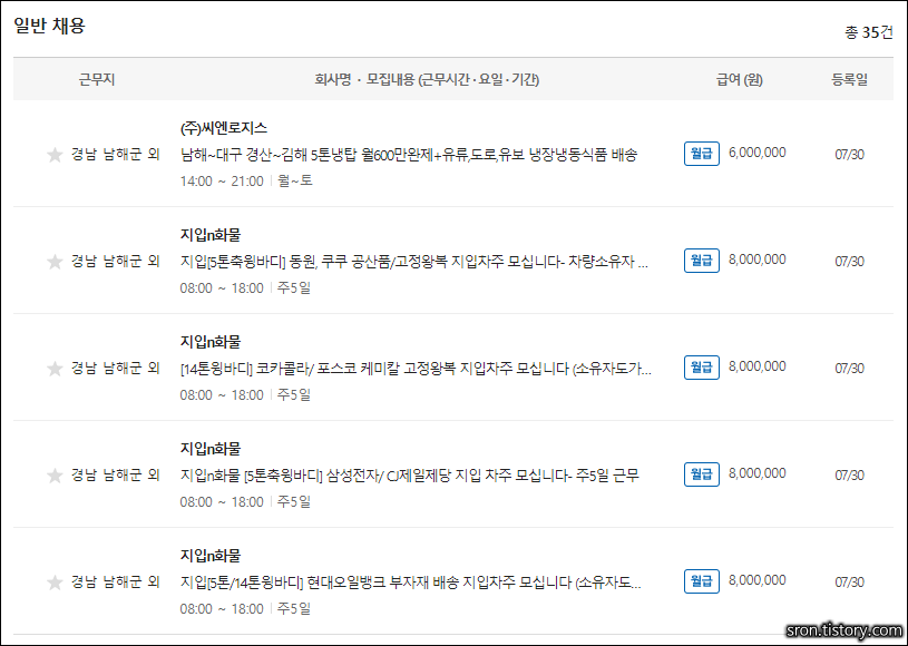 ▲ 식당직원, 주방보조, 주방이모, 홀서빙, 설거지, 노인복지센터, 재가복지센터 요양보호사, 재가요양보호사, 입주요양보호사, 사회복지사, 간병인, 간병사, 간호조무사, 간호사, 국내선원, 김양식, 가두리선원, 선원취업, 연근해 어업 어선원, 배송기사, 지입차주, 지입기사 등 다양한 직종의 구인공고가 있습니다.