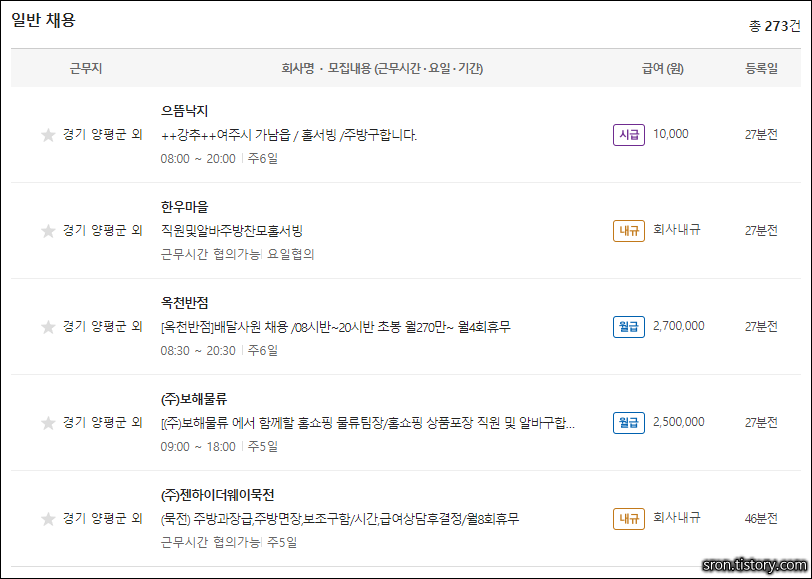 ▲ 식당직원, 주방보조, 주방이모, 홀서빙, 설거지, 아르바이트, 주말직원, 모텔청소, 객실청소, 호텔 룸메이드, 리조트, 펜션 청소직원, 관리직원, 부부청소, 건축현장관리직, 현장기사, 요양병원 조리사, 조리원, 재가요양보호사, 시설요양보호사, 사회복지사, 간호조무사, 간병인, 간병사, 편의점 아르바이트, 주중, 주말직원, 택시운전기사, 버스기사, 화물기사, 납품기사, 배송기사 등의 채용공고를 확인할 수 있습니다.