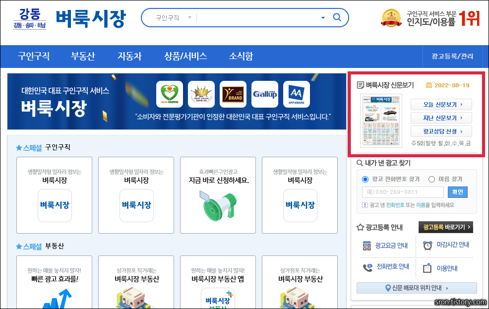 ▲ 서울에서 운영되는 서울교차로 신문을 이용하는 것도 추천합니다. 강동구를 비롯한 서울 지역의 소식, 일자리, 지역광고, 부동산 등의 정보를 확인할 수 있습니다. 또한, 교차로 신문그대로보기 서비스도 이용할 수 있습니다.